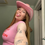 Model with 2A hair sitting on the edge of a fountain