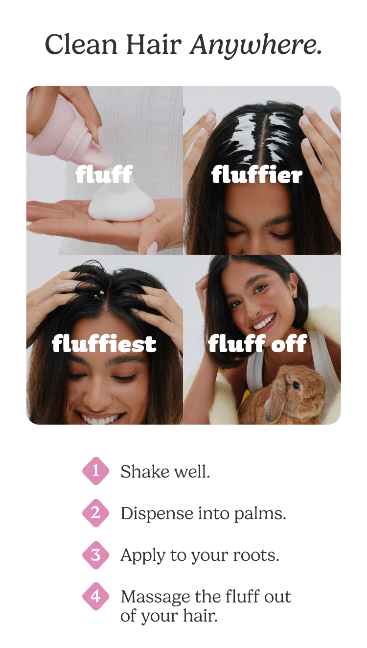 Fresh Fluff Dry Shampoo Foam’s innovative formula has incredibly fine bubbles that can evenly distribute the active ingredients to each strand of hair.